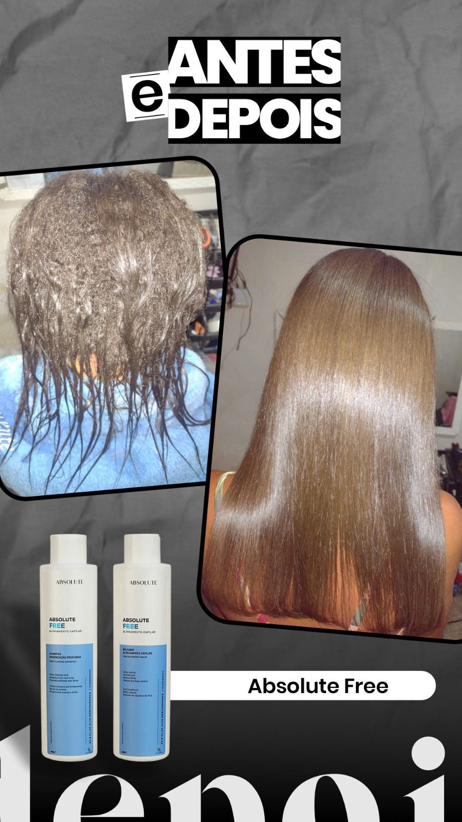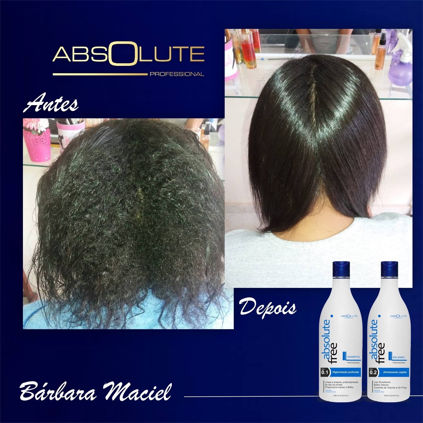 The Absolute Free was developed for nutrition and straightening the hair, giving it shine and movement. Its formulation contains pearls of caviar, acai and albumin. It’s formaldehyde-free and promotes reduction from 70% to 100% of the volume.