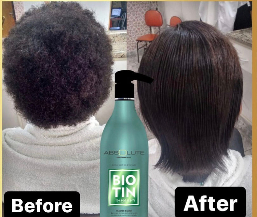 Apply BIOTIN THERAPY MASTER BLEND strand by strand throughout the hair, leave on for 40 to 60 minutes, evaluating the texture and difficulty of straightening each hair. After the break, rinse 50% product, in some cases 100% more sensitive hair rinse, after brushing drying all the hair in narrow and thin strands, then iron each strand 15 to 20 times until obtaining a seal
