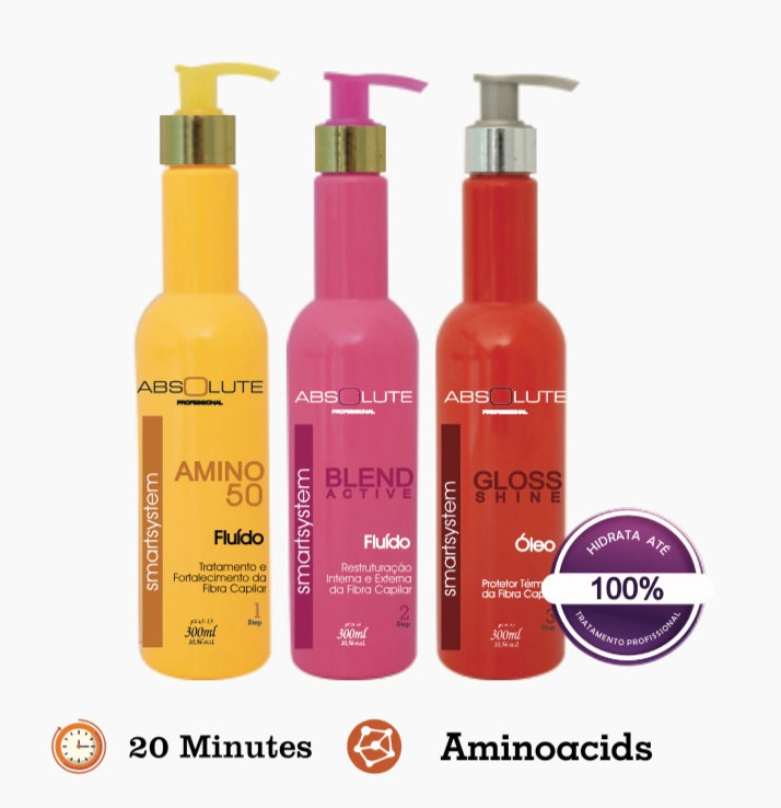The Smart System is a reconstructive treatment, with regenerative and anti-shock function to those cases where the chemical shock happens, leaving fragility and elasticity on the strands. Thanks to its unique formula, it's able to reconnect the bridges, restoring amino acids, mass and proteins that were lost through the chemical processes. Indispensable to treat sensitized hair, elastic strings, brittle or with chemical shock.